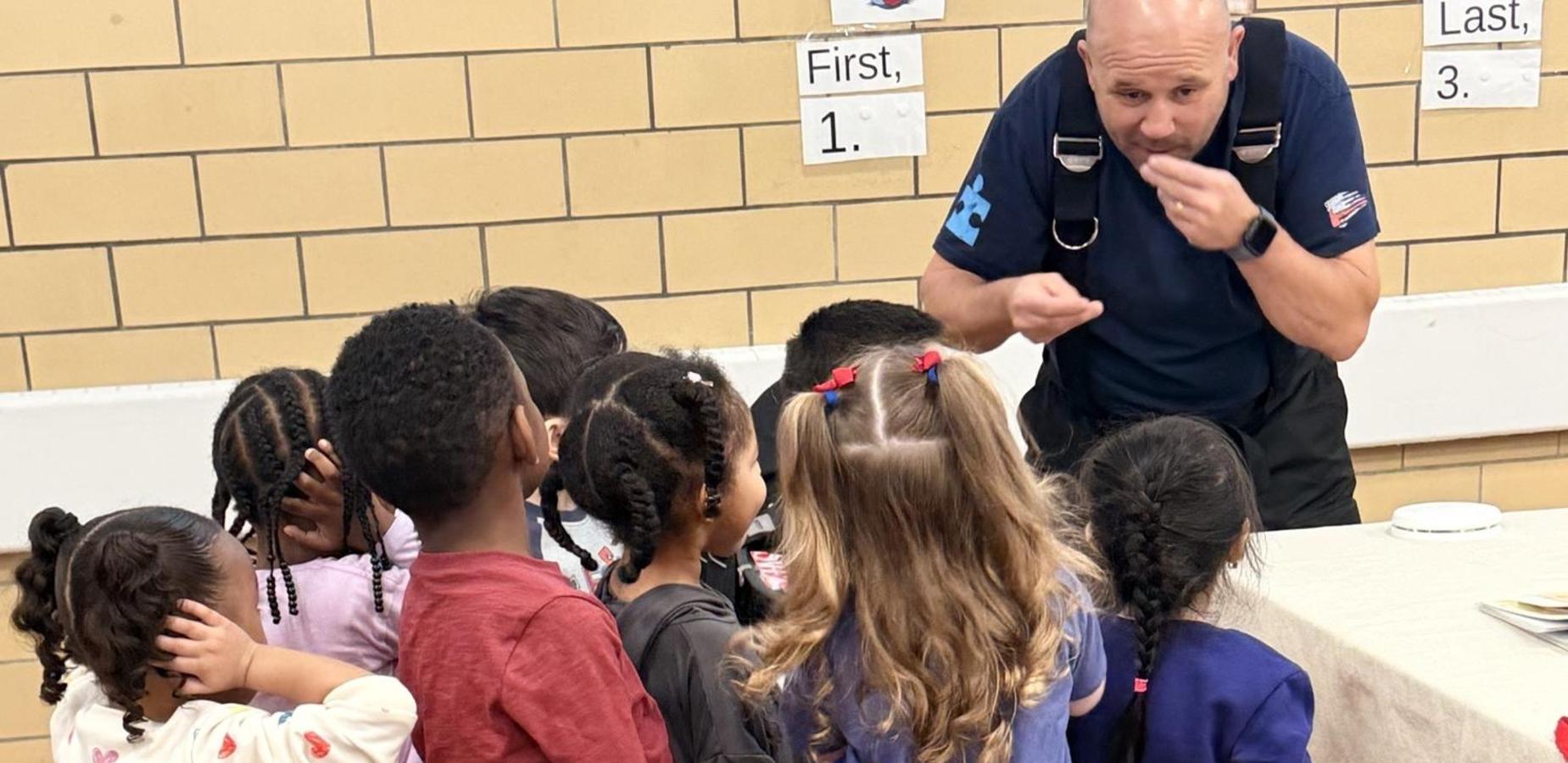 Room 12 with Firefighter Marshall learning fire safety 2026